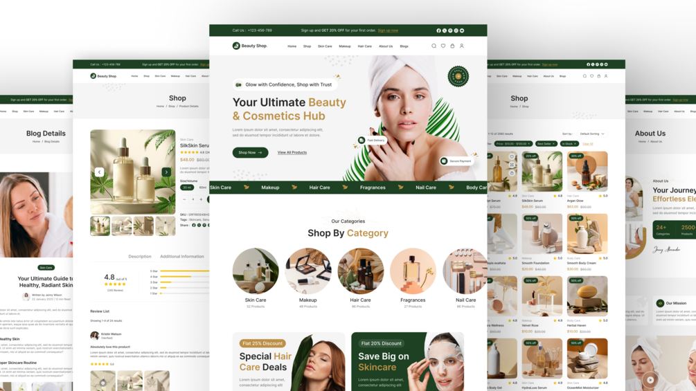 Beauty and Cosmetic Products Shop Website Figma Template with Mobile Responsive Design