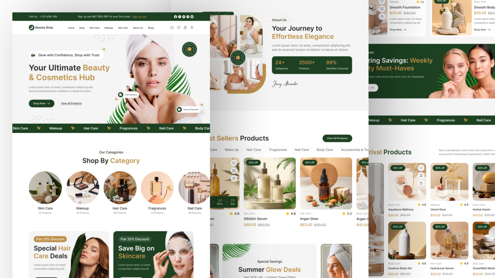 Beauty and Cosmetic Products Shop Website Figma Template with Mobile Responsive Design