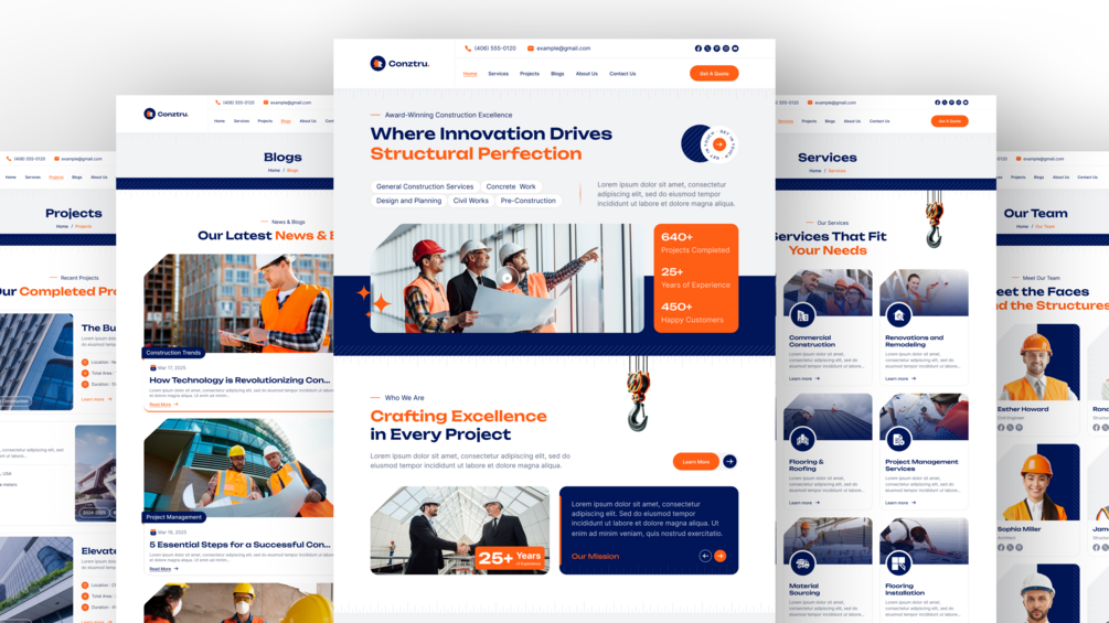 Construction Website Figma Template with Mobile Responsive Design