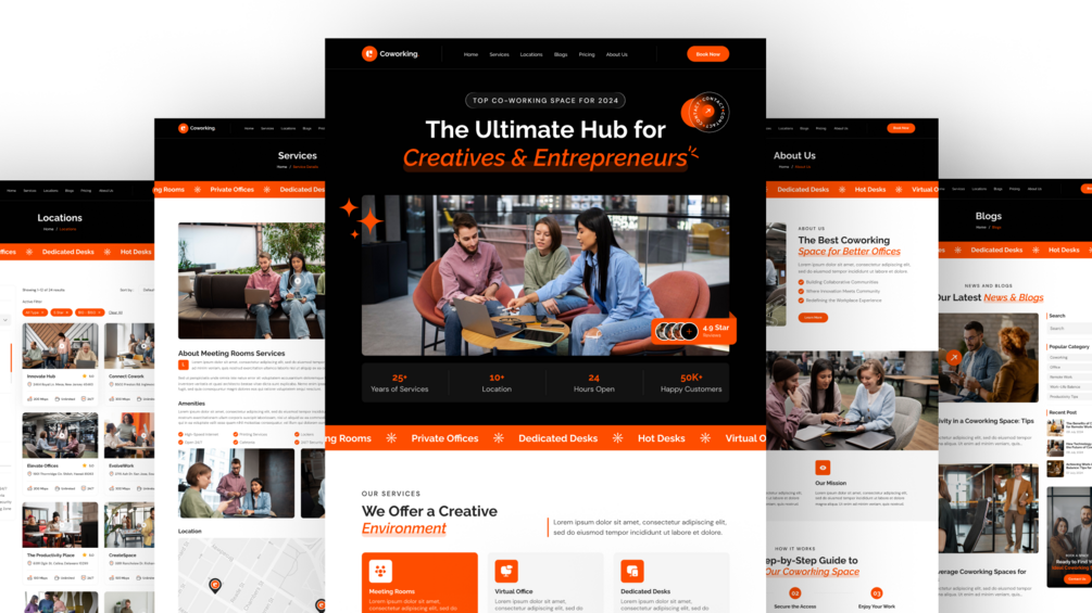 Coworking Space Website Figma Template with Mobile Responsive Design
