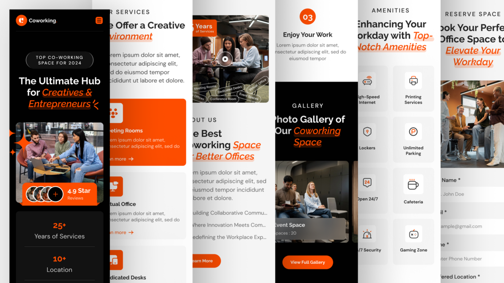 Coworking Space Website Figma Template with Mobile Responsive Design