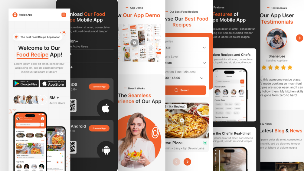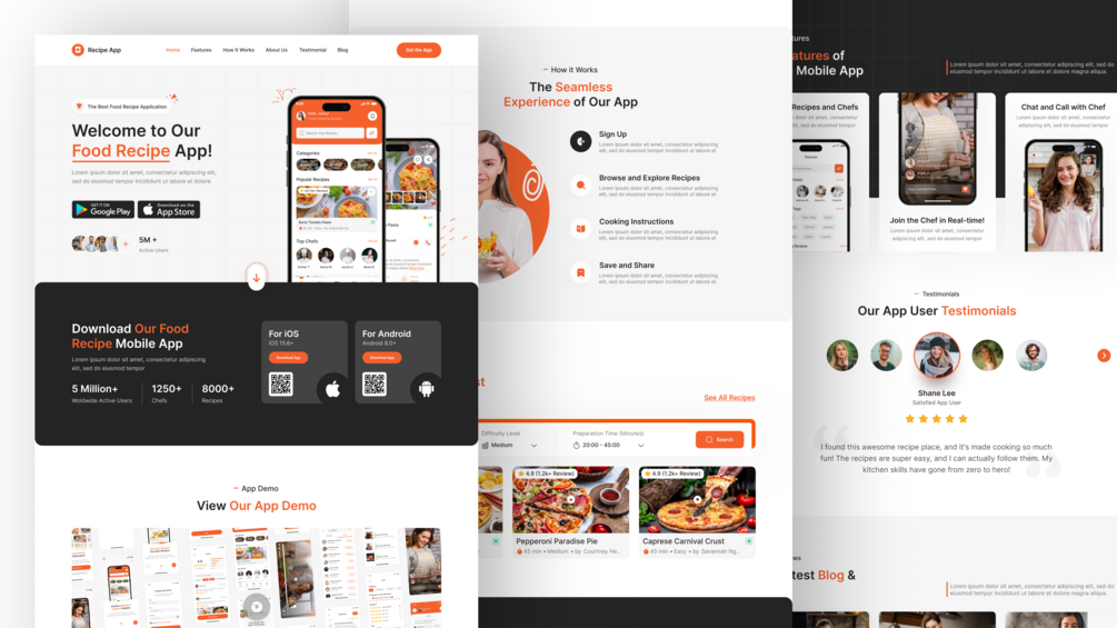 Food Recipe App Landing Page UI Design with Mobile Responsive