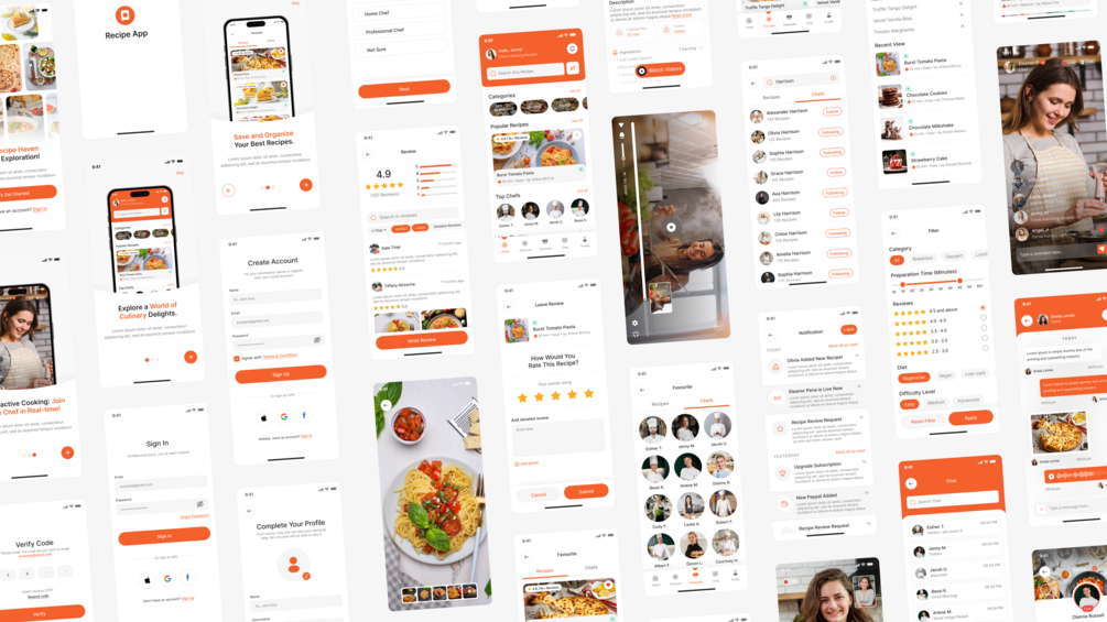 Food Recipe Mobile App Figma UI Kit Design 55+ Screens