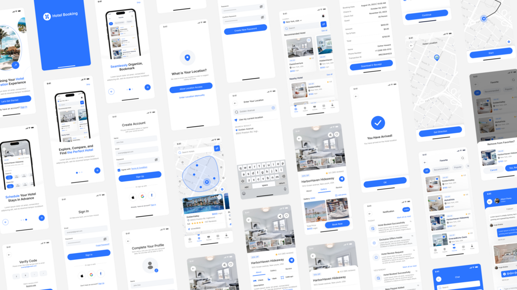 Hotel Booking App Figma UI Kit with 55+ Screens