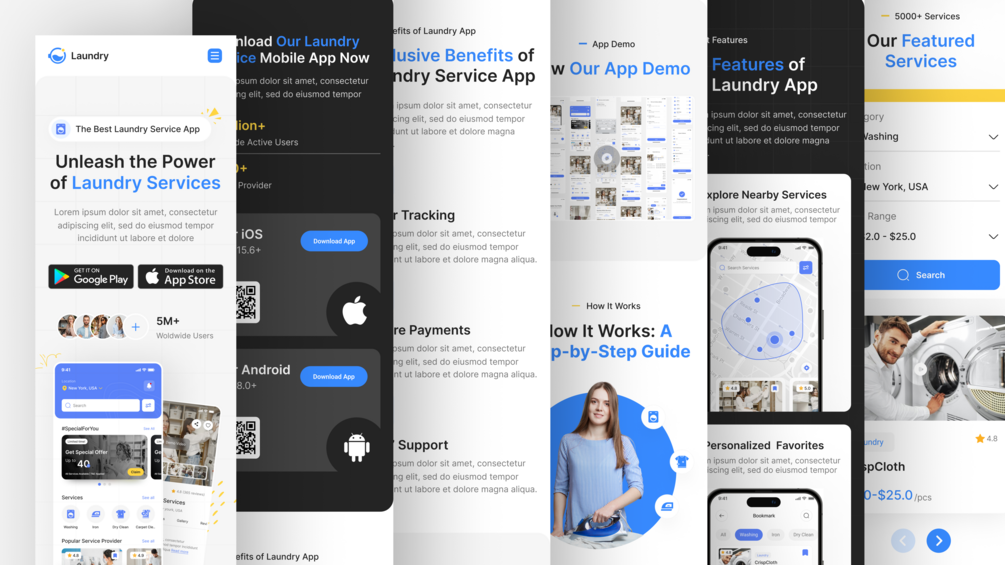 Laundry App Landing Page Figma Design with Mobile Responsive View