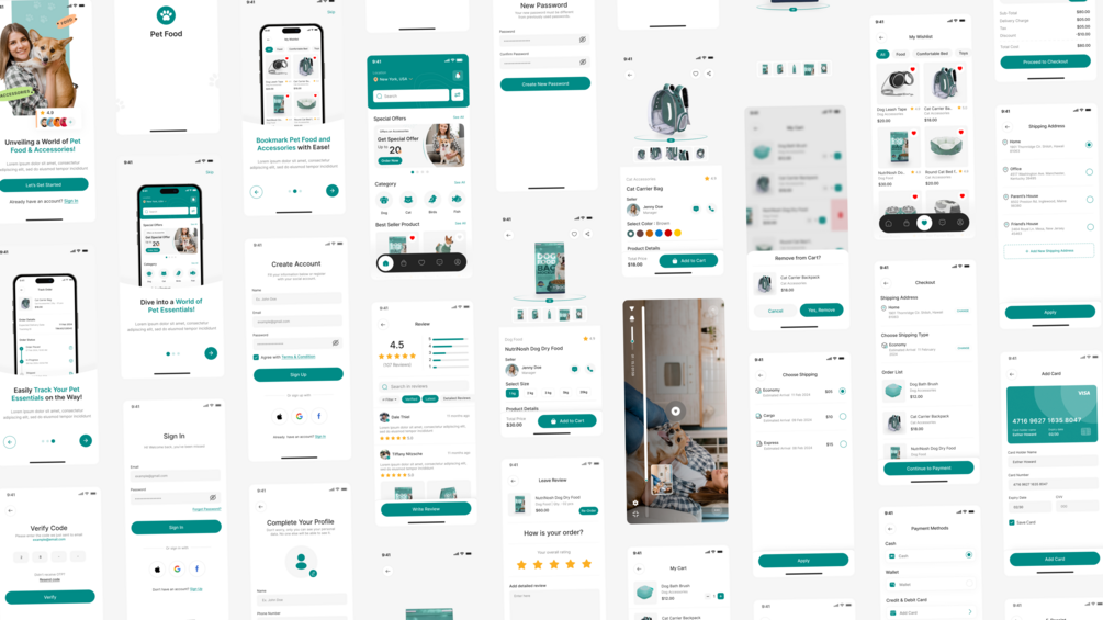 Pet Food and Accessories Shop App Figma UI Kit Design 55+ Screens