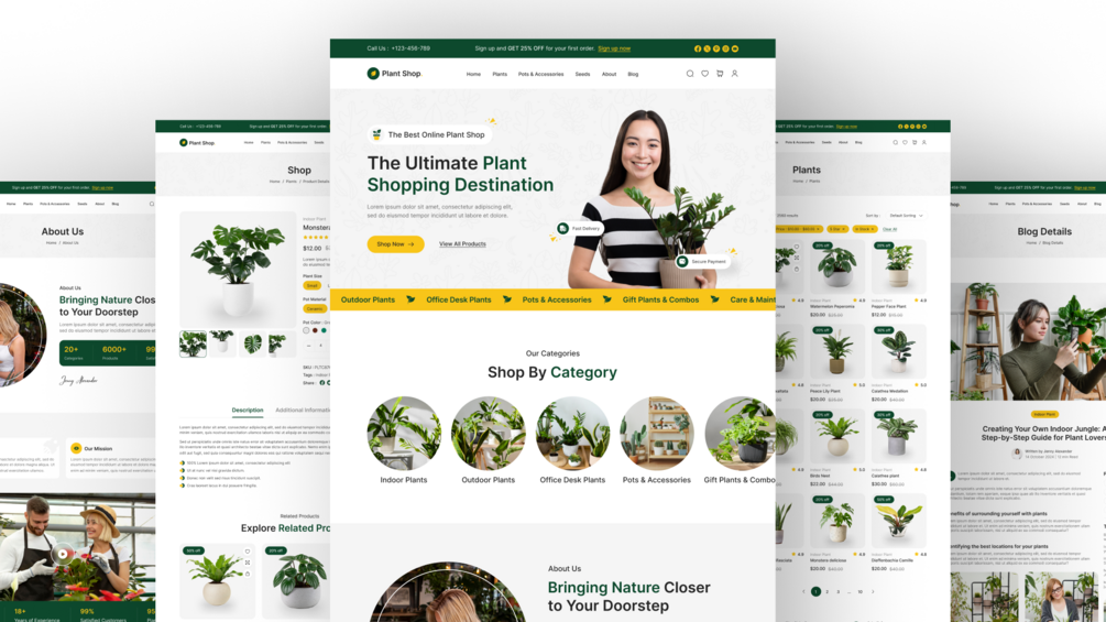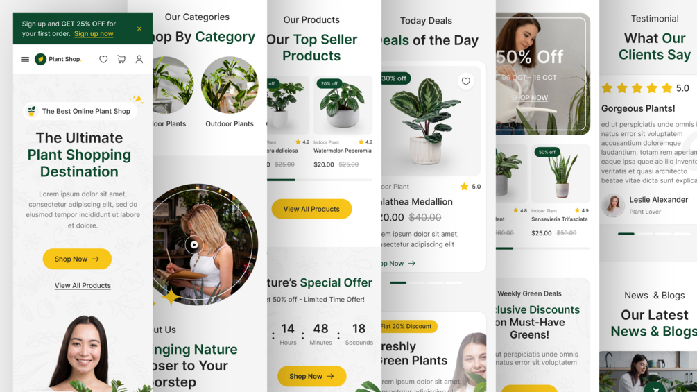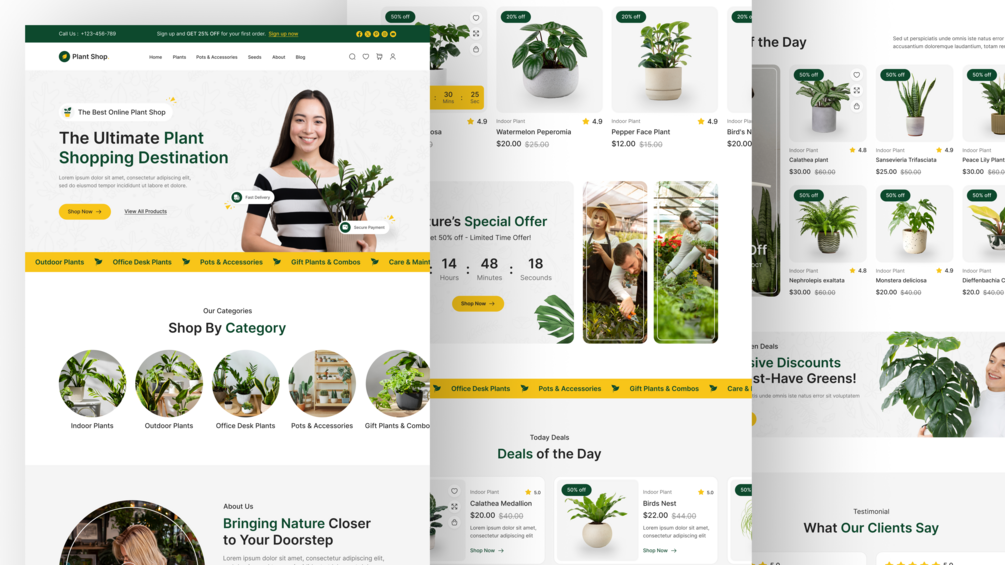 Plant Store Website / Plant Ecommerce Website Figma Template with Mobile Responsive Design
