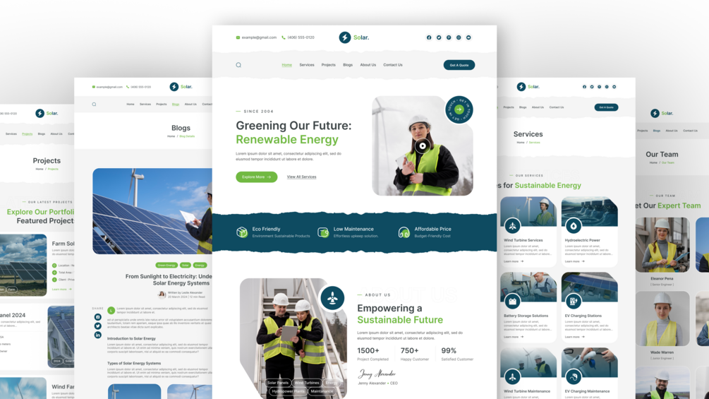 Solar and Renewable Energy Website Design Figma Template with Mobile Responsive Design (12+ Pages)